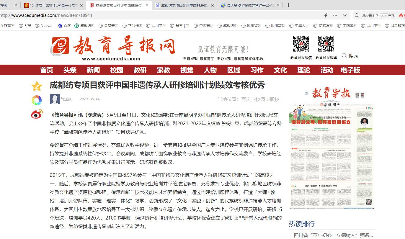 成都纺专项目获评中国非遗传承人研修培训计划绩效考核优秀