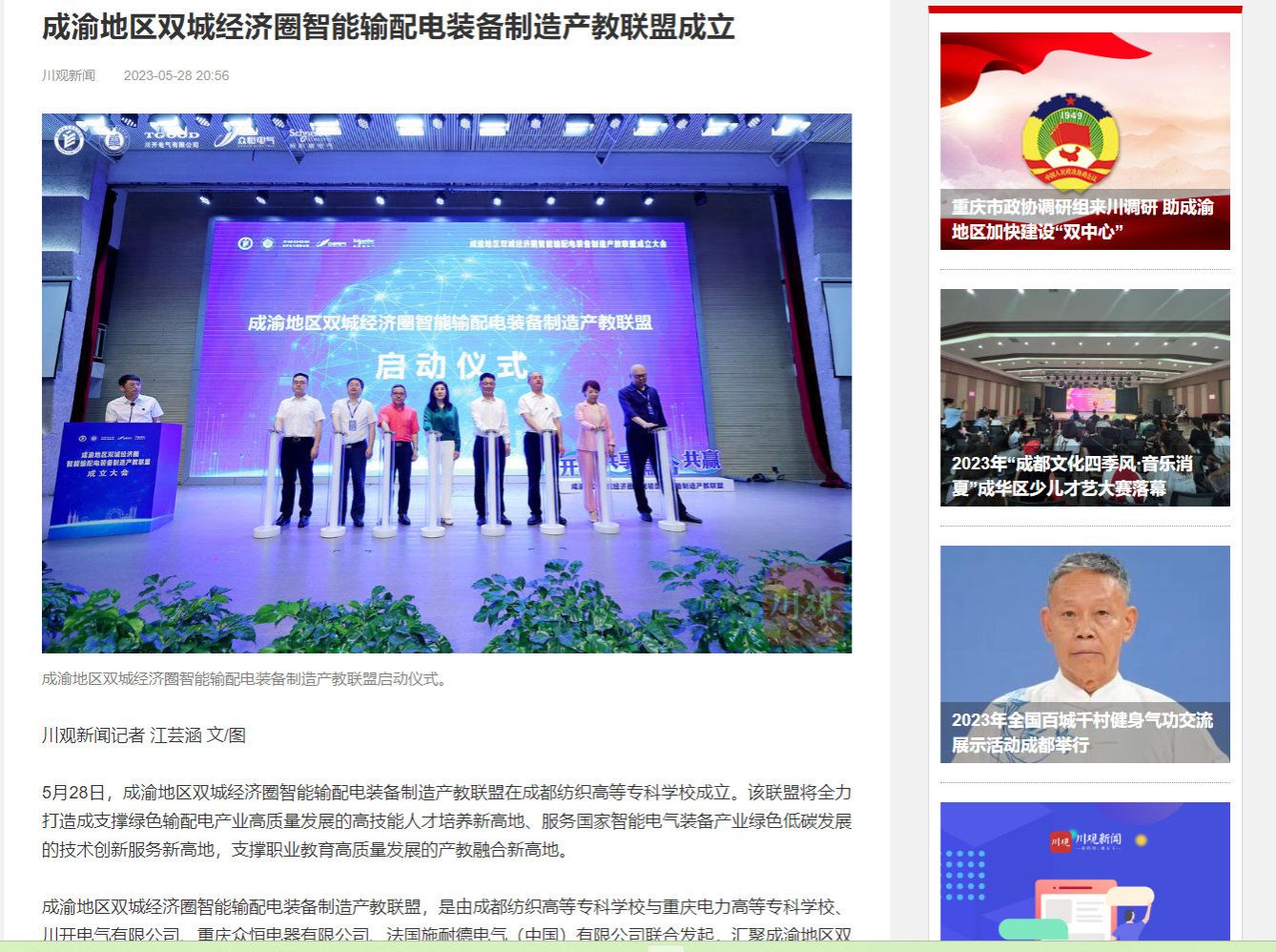 成渝地区双城经济圈智能输配电装备制造产教联盟成立