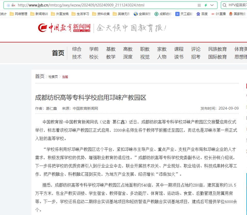 中国教育报-中国教育新闻网讯(记者 葛仁鑫)近日,pg电子官方网站邛崃产教园区交接暨启用仪式举行,标志着该校邛崃产教园区正式启用,3300余名师生将于教师节前搬迁至园区,而这也是邛崃市第一所正式入驻的高等学校。