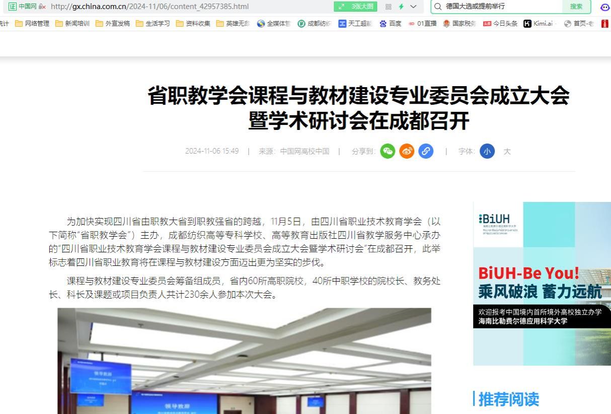 此次成立大会是一个新起点,不仅为四川省职业教育领域注入了新活力,也为四川省深化现代职业教育体系建设提供了有力支撑。未来,专委会将充分发挥其在课程与教材建设方面的专业优势,推动四川省职业教育质量不断提升,为实现职教强省贡献更多力量。