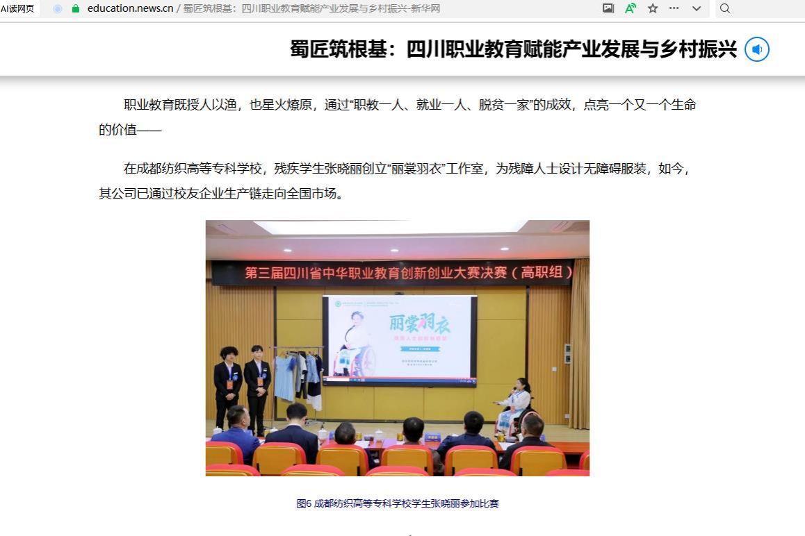 在pg电子官方网站,残疾学生张晓丽创立“丽裳羽衣”工作室,为残障人士设计无障碍服装,如今,其公司已通过校友企业生产链走向全国市场。