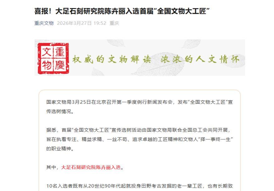 其中,大足石刻研究院陈卉丽入选。