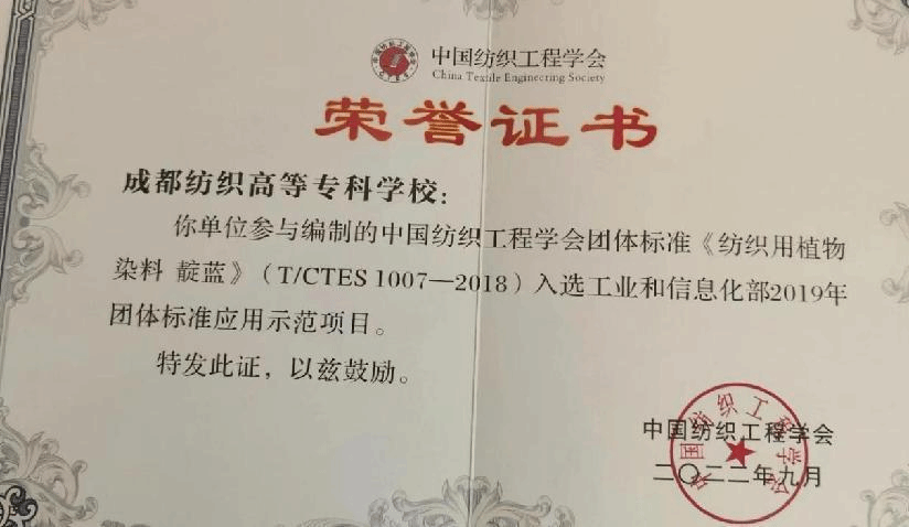 11月18日,pg电子收到中国纺织工程协会颁发的参编团体标准项目入选工信部“百项团体标准应用示范项目”荣誉证书,源于pg电子参与编制的中国纺织协会团体标准《纺织用植物染料 靛蓝》入选工业和信息化部2019年团体标准应用示范项目。