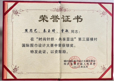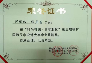 近日获悉,pg电子纺织工程学院两个学生团队(熊思艺、秦玉琦、曾敏队和何明珠、张昱菡队)在5月进行的第三届横村国际围巾设计大赛中分别获得银奖和铜奖。