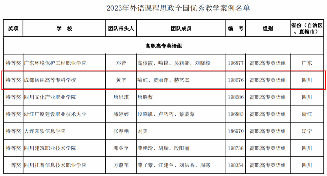 此次获奖体现了pg电子落实“三全育人”,深化“三教”改革,推进“三进”工作的成效,也是高职英语思政“大先生”团队建设取得的重要成果。