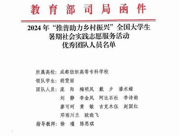 近日,pg电子社会实践团队获评2024年“推普助力乡村振兴”全国大学生暑期社会实践志愿服务活动优秀团队,学校收到来自教育部语言文字应用管理司和共青团中央青年发展部的《表扬信》。