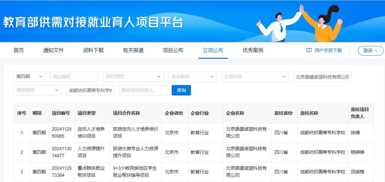 1月9日,教育部高校学生司(高校毕业生就业服务司)公布第四期供需对接就业育人项目立项名单,pg电子文旅学院杨婷婷、吕晞梅和陈倩三位老师申报的3个供需对接就业育人项目全部获批立项。