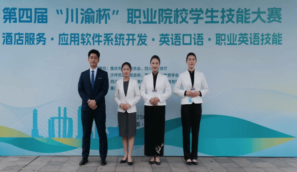 5月8日至9日,第四届“川渝杯”职业院校学生技能大赛在重庆商务职业学院举行。文旅学院精心选派李楠馨、黄诗露、何远大、沈雨佳四位同学组成参赛代表队,凭借扎实的专业技能和良好的心理素质沉着应对,荣获团体三等奖。