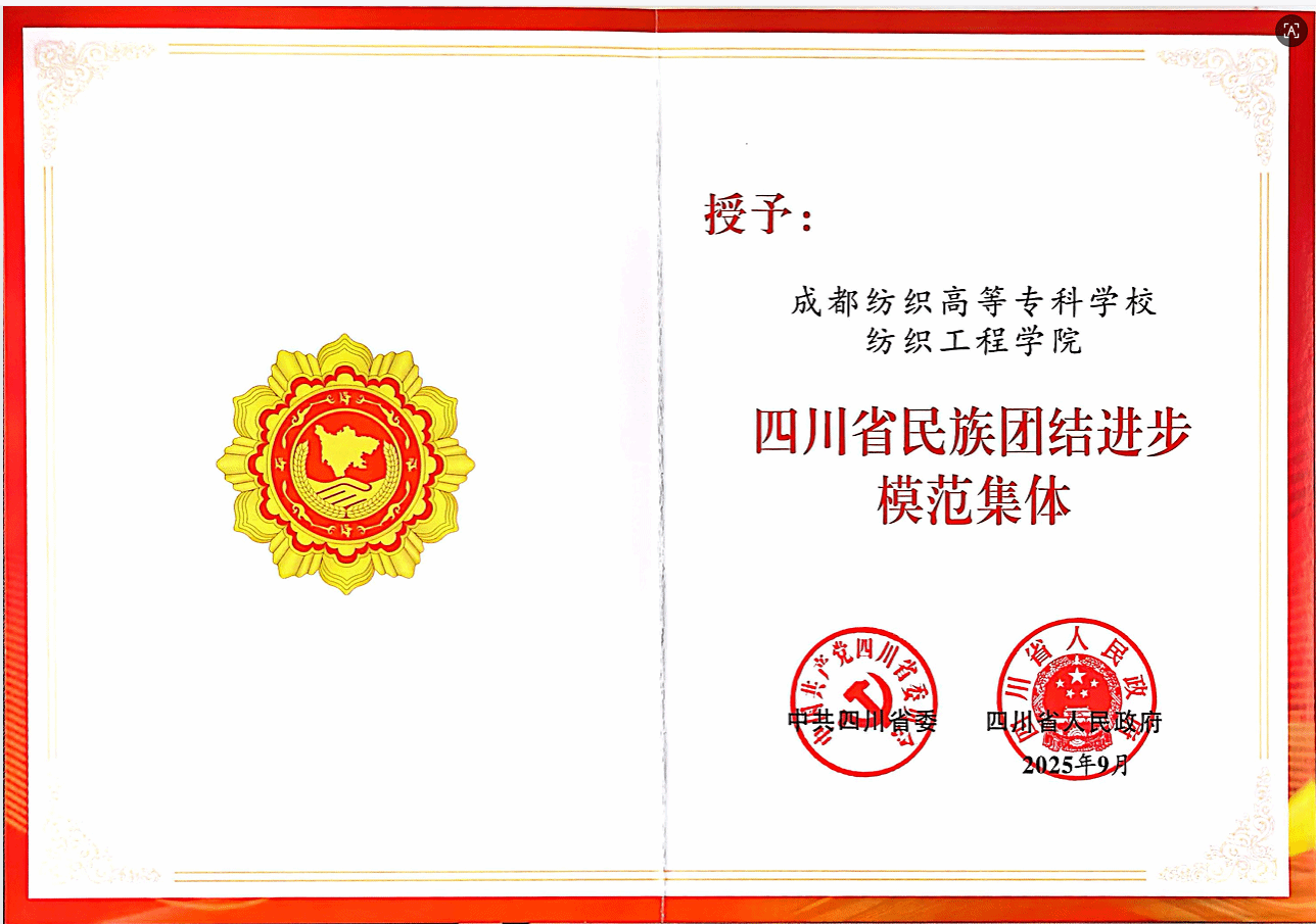 纺织工程学院被省委省政府授予“四川省民族团结进步模范集体”荣誉