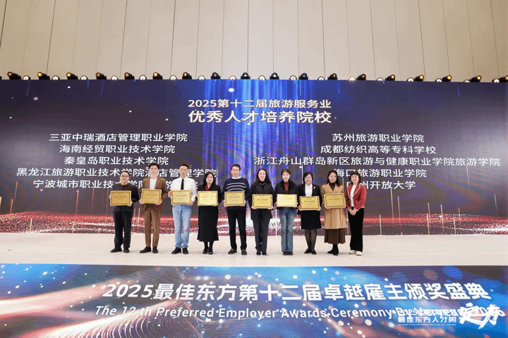 11月24日,由最佳东方招聘求职平台主办的2025最佳东方教育论坛在杭州举行。在同期举办的2025第十二届旅游服务业表彰盛典上,pg电子因在旅游类专业人才培养领域的扎实积淀、创新实践与行业贡献,荣获“优秀人才培养院校”称号,彰显了业界对学校办学质量与育人成效的高度认可。