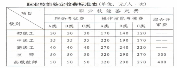 按照《四川省发展和改革委员会四川省财政厅关于重新公布全省人力资源社会保障部门行政事业性收费的通知》(川发改价格〔2017〕472号)、《四川省发展和改革委员会四川省财政厅关于全省人力资源社会保障部门行政事业性收费的通知》(川发改价格规〔2023〕473 号)收取。本次为初级170元/人,中级225元/人,高级280元/人,技师640元/人。