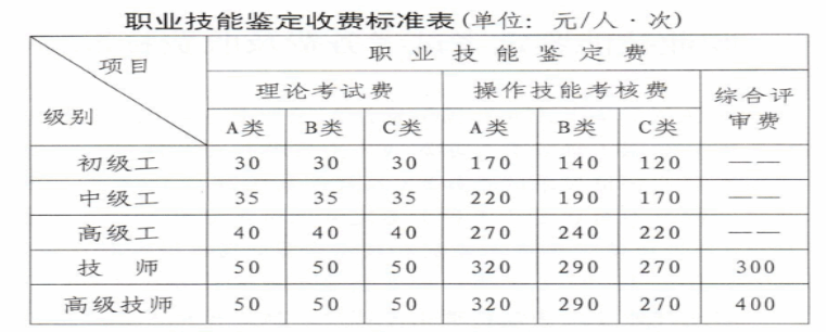 按照《四川省发展和改革委员会四川省财政厅关于重新公布全省人力资源社会保障部门行政事业性收费的通知》(川发改价格〔2017〕472号)、《四川省发展和改革委员会四川省财政厅关于全省人力资源社会保障部门行政事业性收费的通知》(川发改价格规〔2023〕473号)收取。认定费:初级 150元/人、中级 205元/人、高级 260元/人。