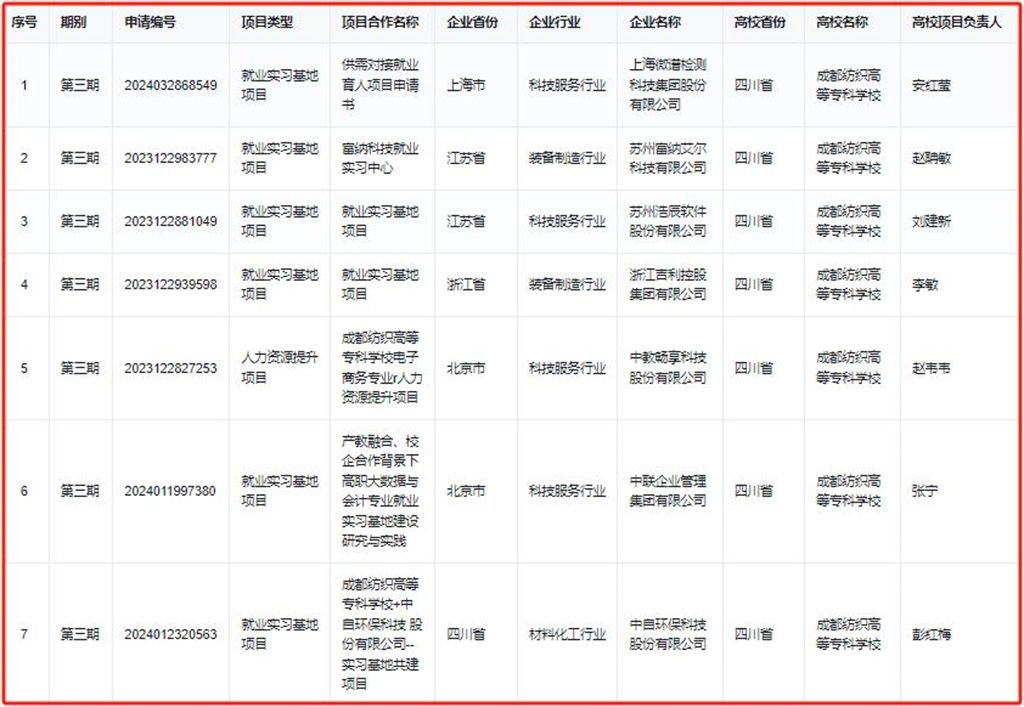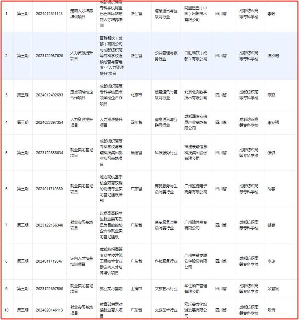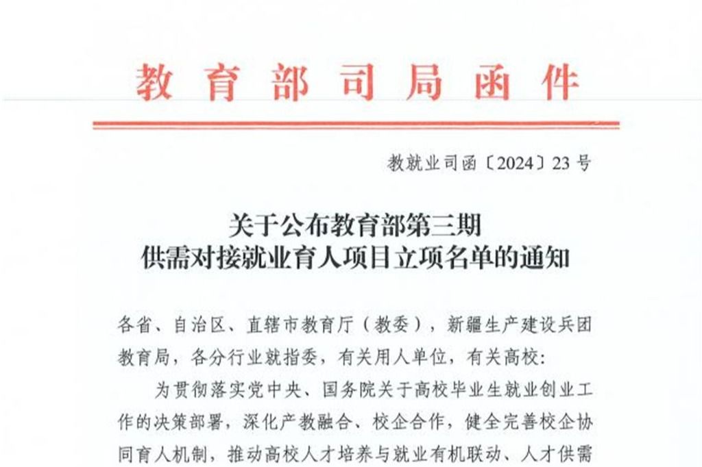 近日,教育部发布《关于公布教育部第三期供需对接就业育人项目立项名单的通知》(教就业司函〔2024〕23号),经联合申报、专家审核,pg电子对接企业共建的17个就业育人项目成功获批立项,较上年增加6项。其中包括“定向人才培养培训项目”2项、“就业实习基地项目”11项、“人力资源提升项目”3项,重点领域校企合作项目1项,涵盖装备制造、材料化工、科技服务、信息通讯与互联网、公共管理与服务行业、商贸服务与生活消费、文旅艺术7大行业。