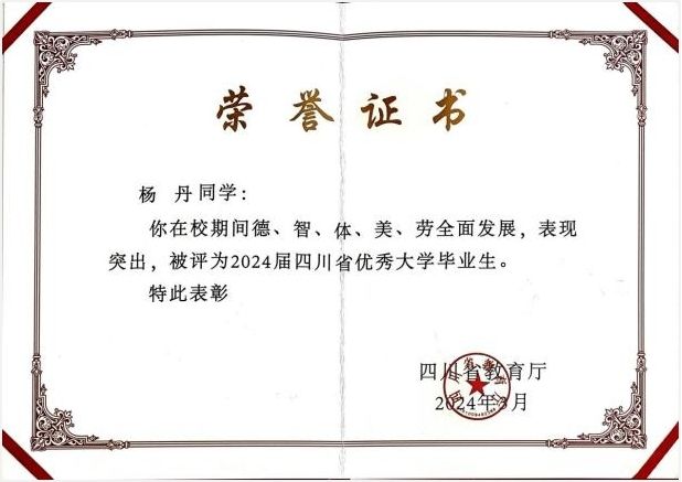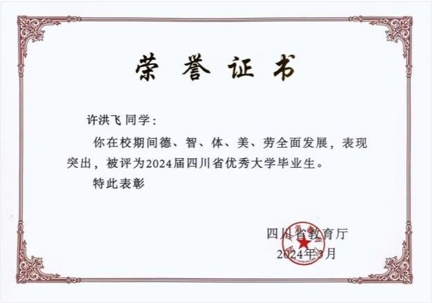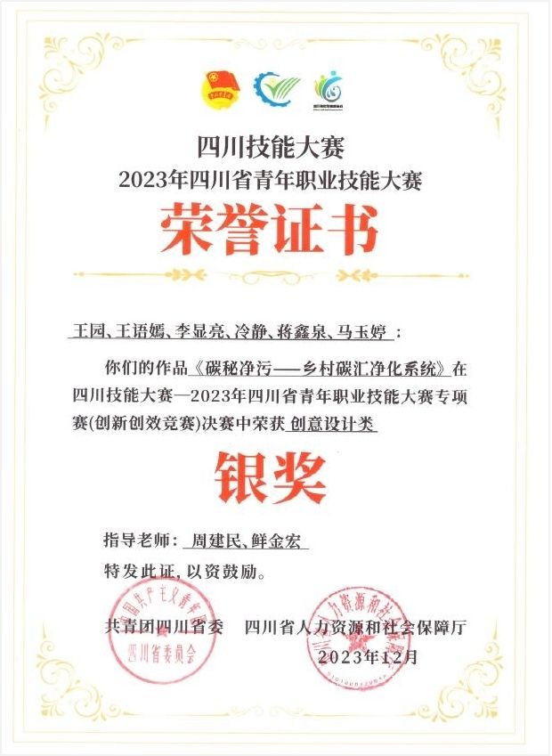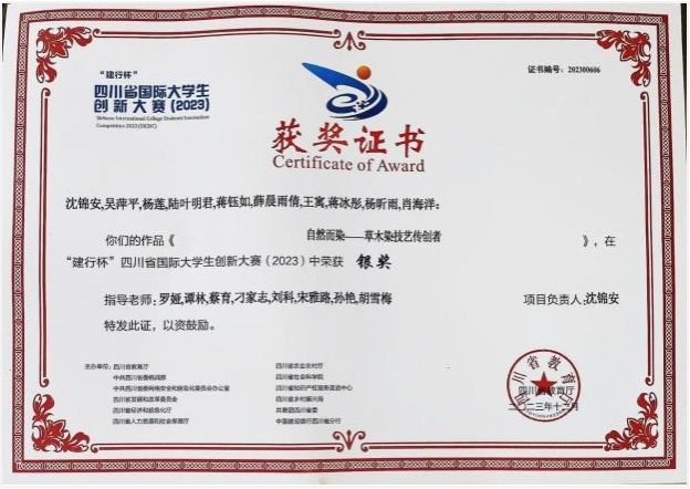 两年来,实验室培养本科生和专科生人数达36人,科研育人成效显著。一是学术成果突出,学生参与发表学术论文3篇,申请发明专利3项(获授权2项),1人获得“纺织之光”中国纺织工业联合会学生奖。二是参加竞赛成绩优异,学生获得中国国际“互联网+”大学生创新创业大赛国家级优胜奖1项、省级银奖和铜奖各1项,获得2023年第九届全国大学生物理实验竞赛国家三等奖1项,获得全国数学建模大赛四川省赛二等奖1项。三是助力了学生就业、升学,10余名同学到上市公司、外资企业、大型民营企业、中国科学院成都生物所等大型企事业科研单位工作;3名同学分别被四川轻化工大学、西南石油大学和长安大学录取为硕士研究生,3人获得四川省优秀大学毕业生荣誉。