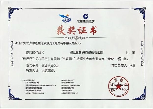“互联网+”大赛和四川国际大学生创新大赛学生获奖证书