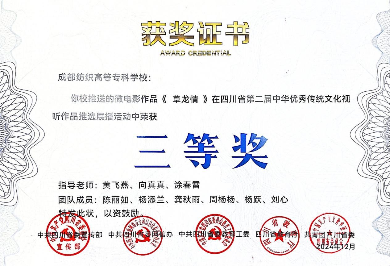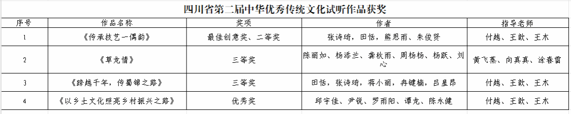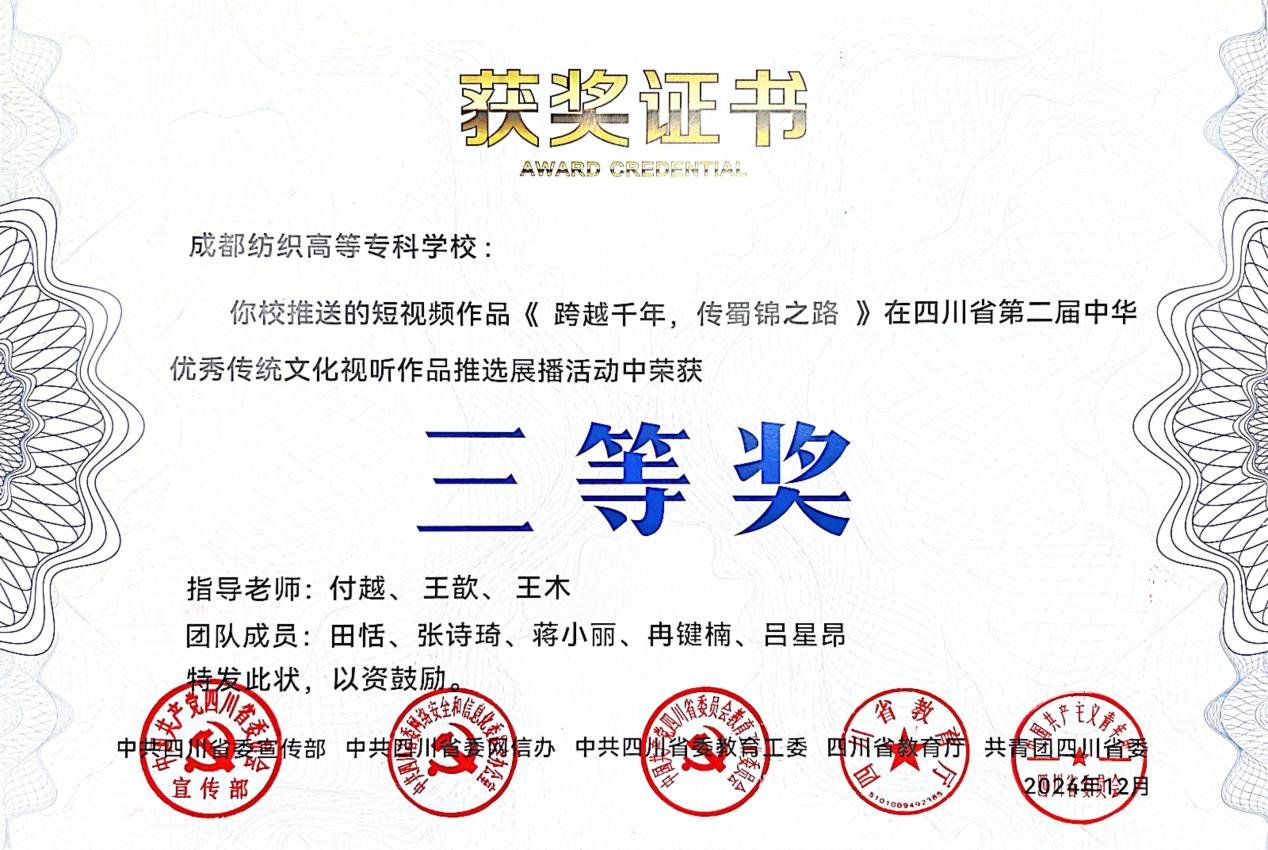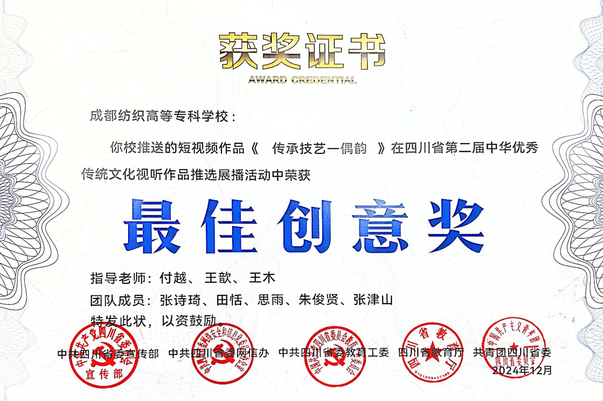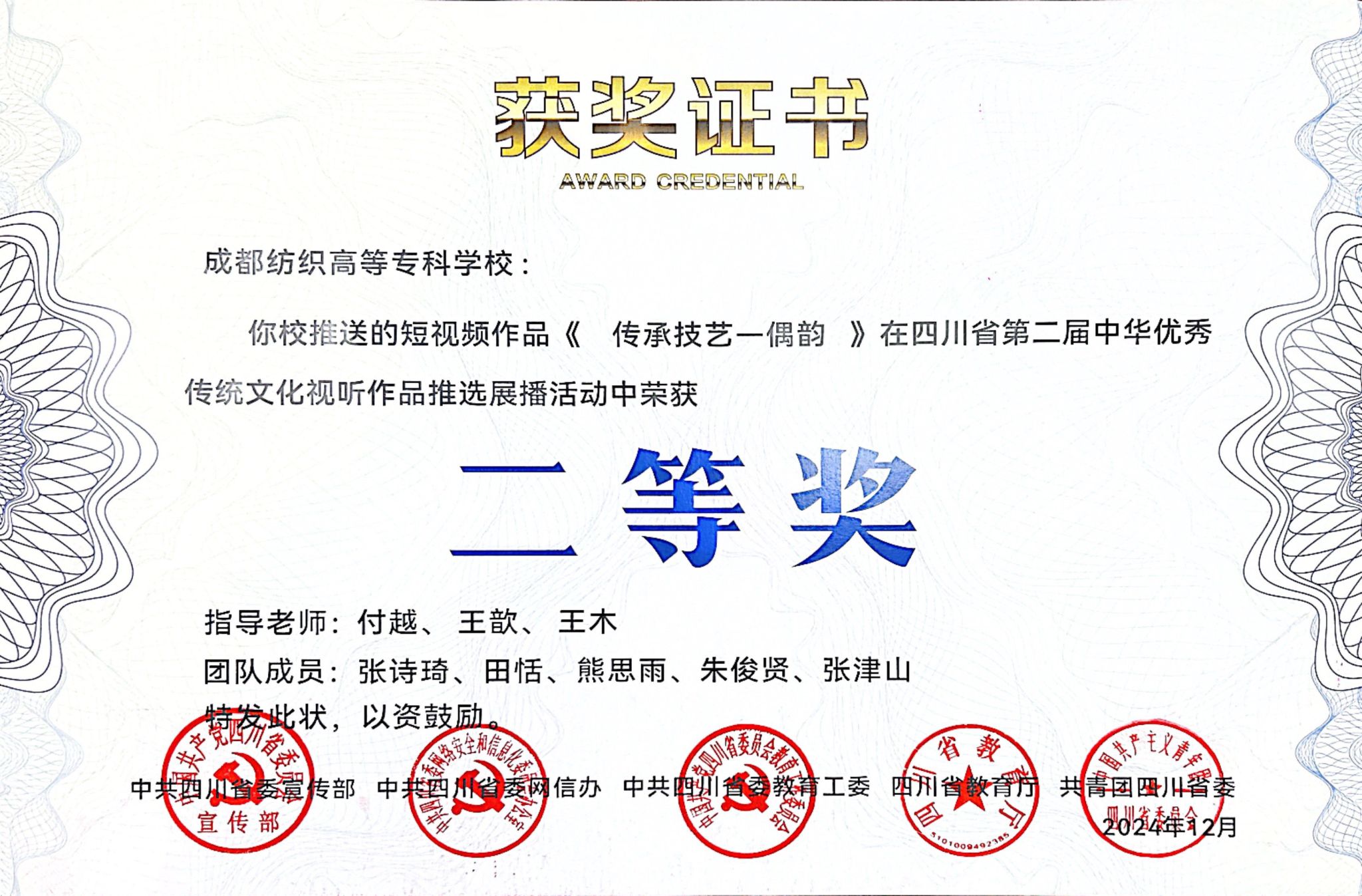 近日,四川省第二届中华优秀传统文化视听作品大赛圆满落幕。pg电子师生积极参与创作,在众多参赛队伍中脱颖而出,共斩获1个二等奖、2个三等奖、1个优秀奖及1个最佳创意奖,展现了学校在传统文化传承与创新方面的深厚底蕴和显著成果。
