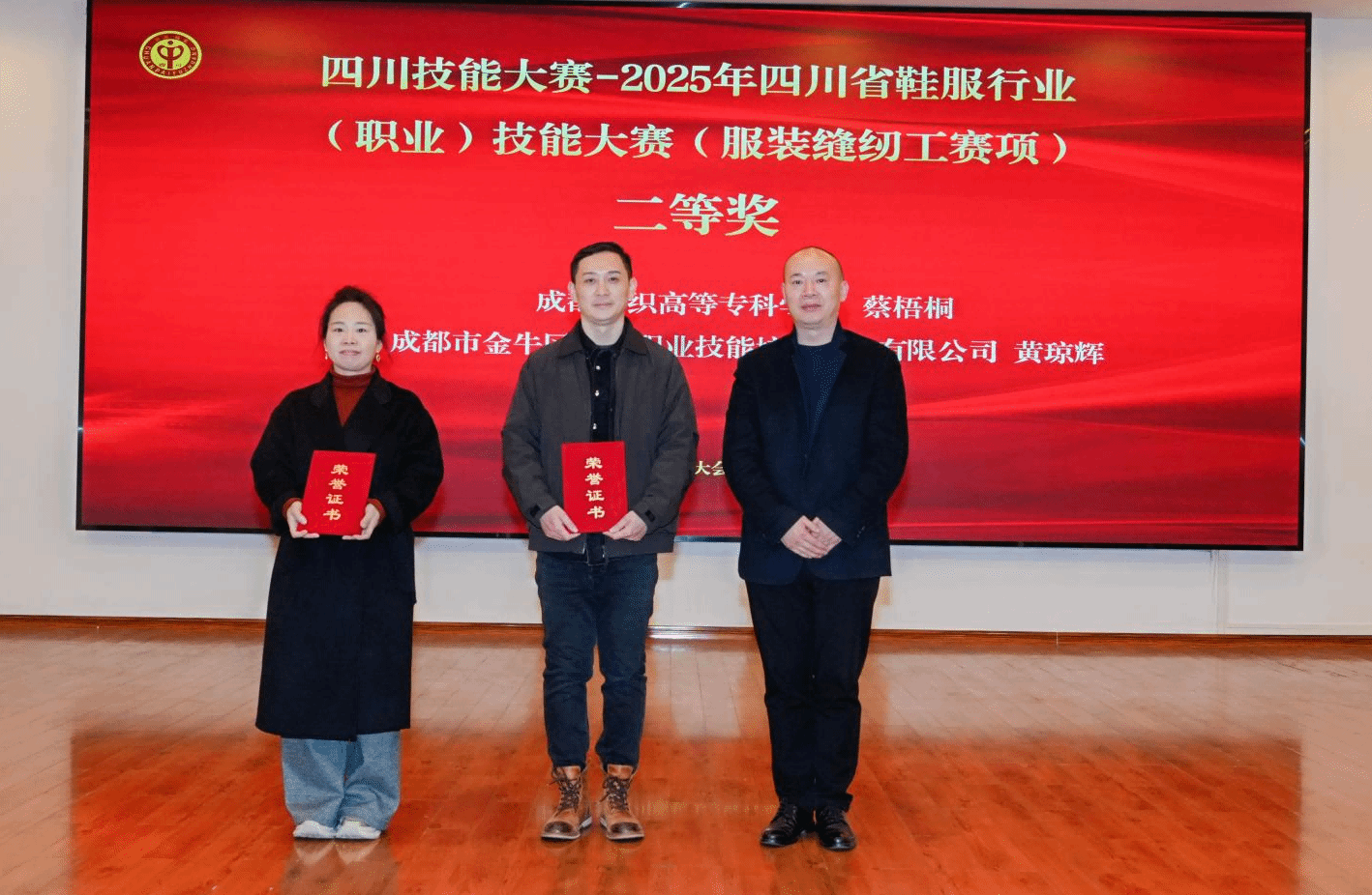 服装学院蔡梧桐老师凭借扎实的专业技能与出色的现场表现,荣获四川技能大赛——2025年四川省鞋服行业(职业)技能大赛服装缝纫工赛项二等奖,展现了pg电子教师队伍优秀的专业素养与过硬的实战能力。