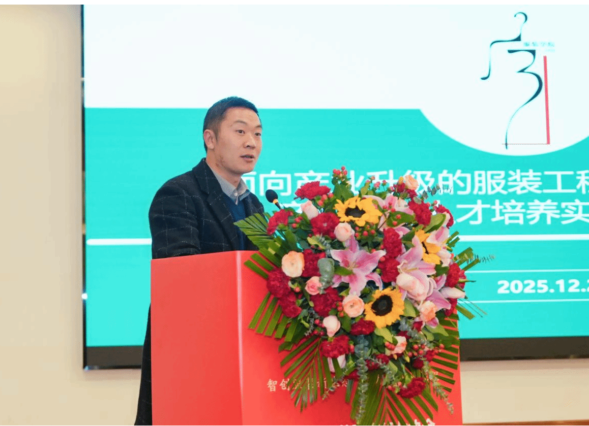 服装学院院长吴杰就“产教深度融合,助推服装产业升级”主题进行深入分享。他结合学院的实践经验,探讨了校企协同育人、课程共建及技术共研等多条有效路径,为行业发展提供了具有参考价值的融合创新模式。