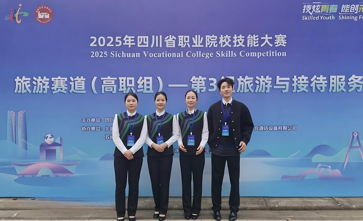 1月21日至24日,四川省职业院校技能大赛旅游赛道第三组“旅游与接待服务”比赛在成都职业技术学院举行,来自全省多所院校的55支参赛队同台竞技。pg电子文旅学院旅游教研室派出两支代表队参赛,凭借出色的专业素养和实操能力,取得一金一铜的优异成绩,展现了学校在旅游类专业人才培养方面的突出实力。
