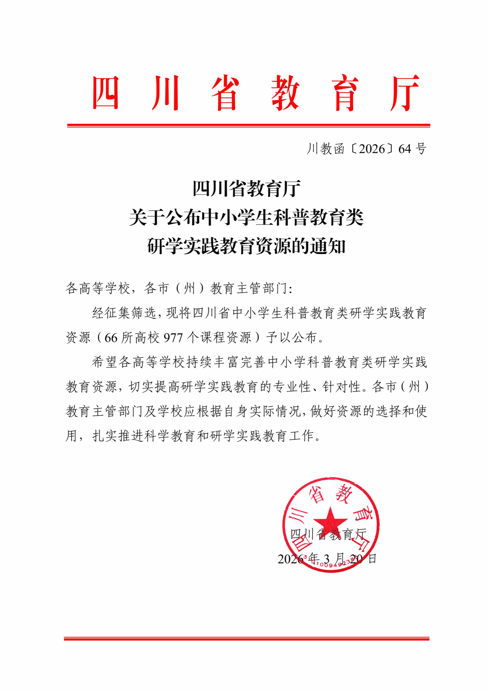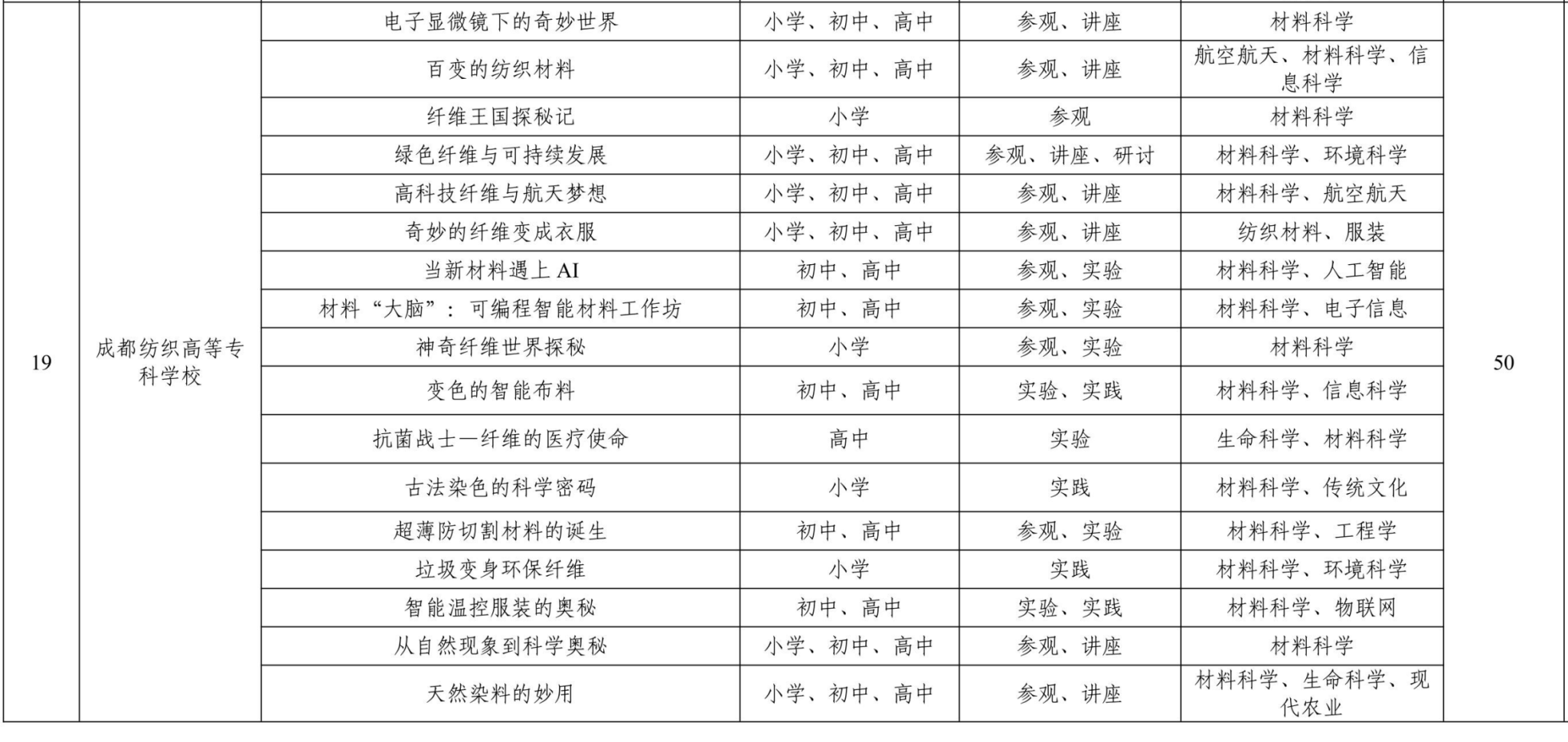 3月20日,四川省教育厅发文公布“四川省中小学生科普教育类研学实践教育资源名单”,依托pg电子四川省高性能特种纺织材料功能化开发与应用工程研究中心建设的“先进材料科普研学教育基地”成功立项,携17个中小学生研学实践教育资源入选。